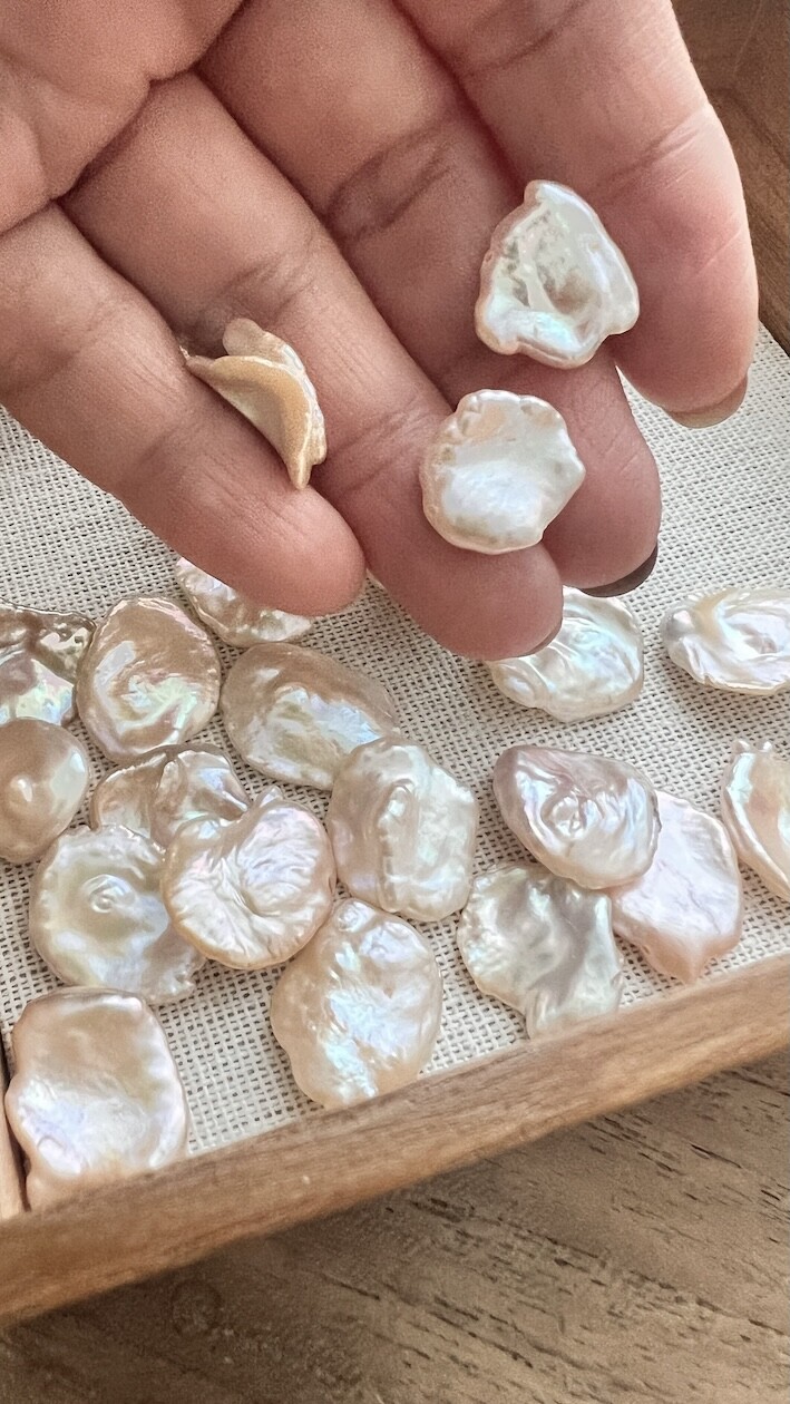 이 진주들은 납짝하고 작은 사이즈가 특징이며 아주 훌륭한 광택을 가지고 있습니다.