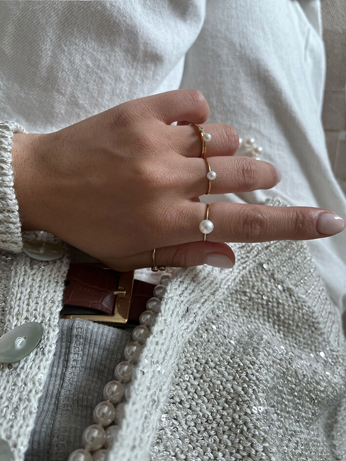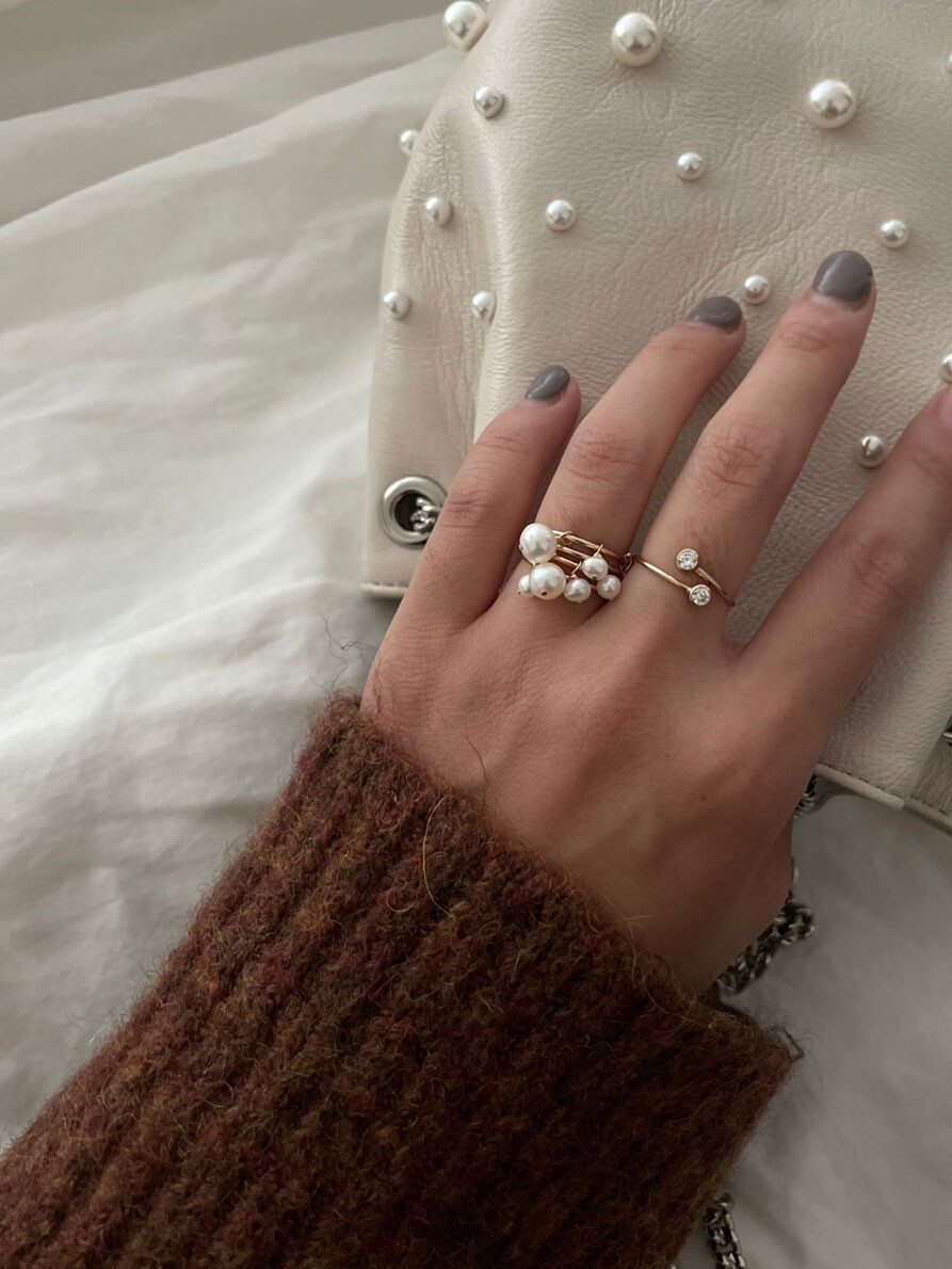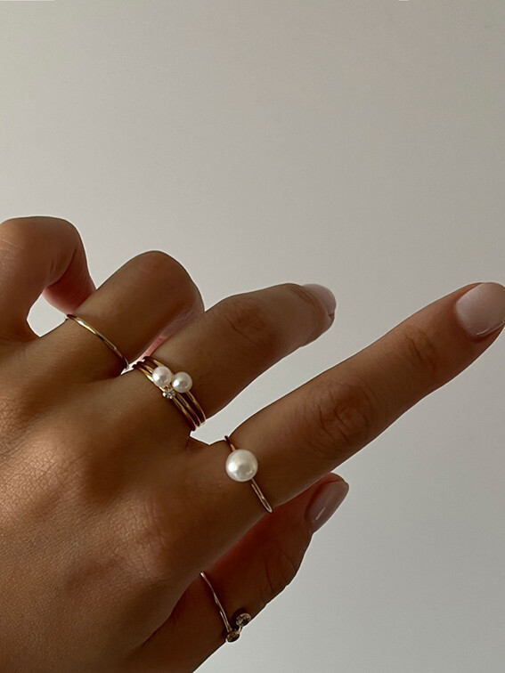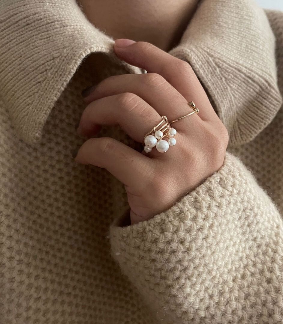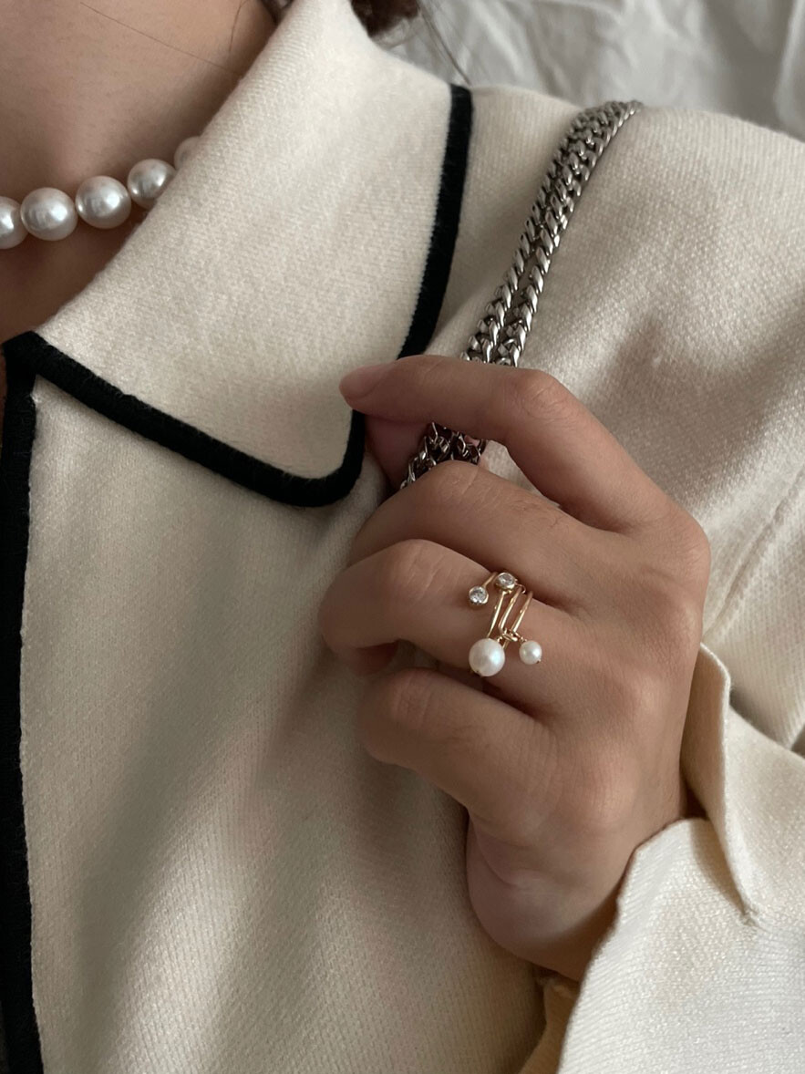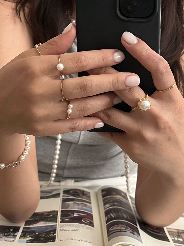두가지 사이즈가 다른 진주반지를 2-3개 같이 하기도 하고,