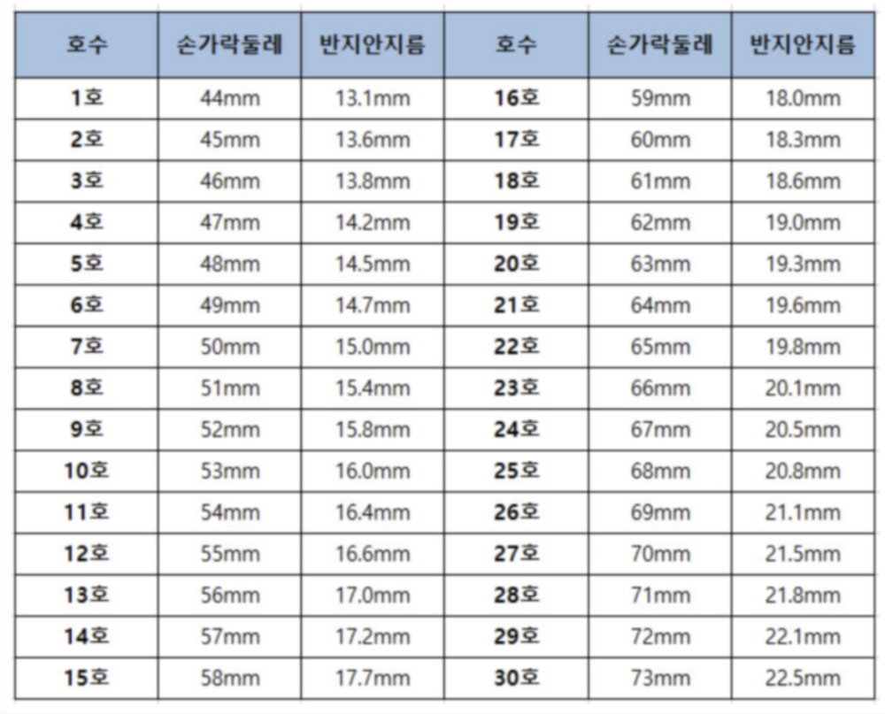 위의 사이즈표에서 고객님의 반지사이즈를 확인하신 후 주문해주세요.