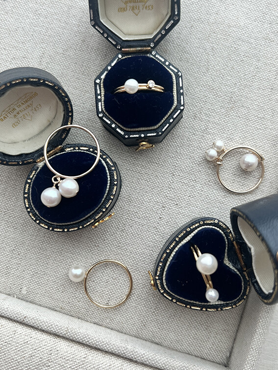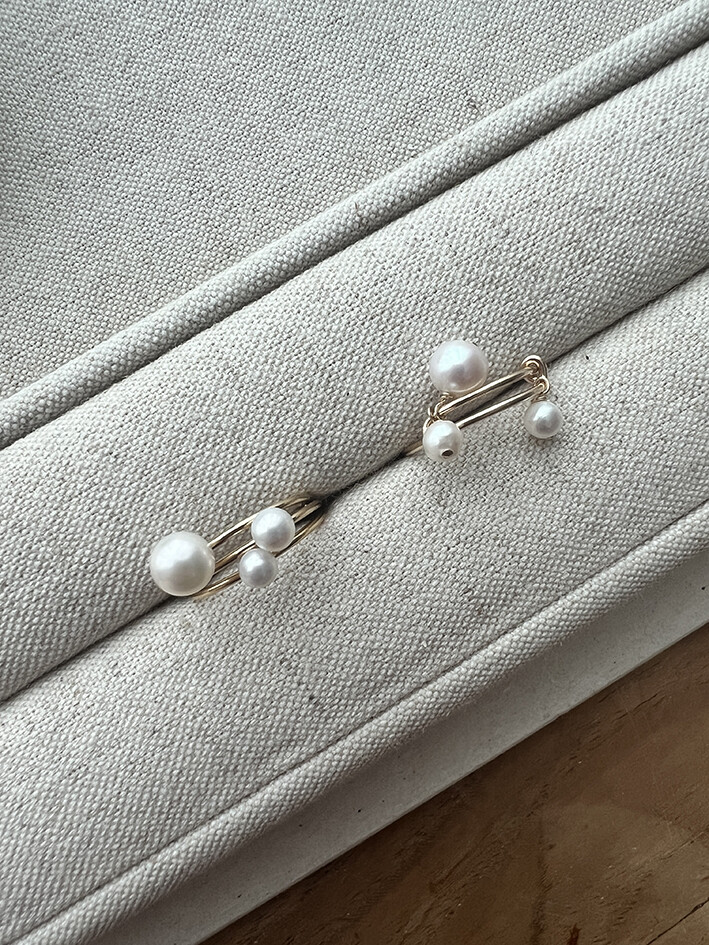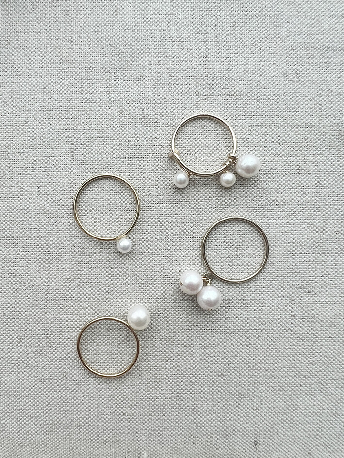 볼드하고 존재감 있는 것들도 너무 좋지만,이렇게 작고 사랑스러운 무드들로 가득 채워보는 것 또한 너무나 행복하고 즐거우니까요.반지 하나씩 보면 심플한 진주와 실반지 같지만,