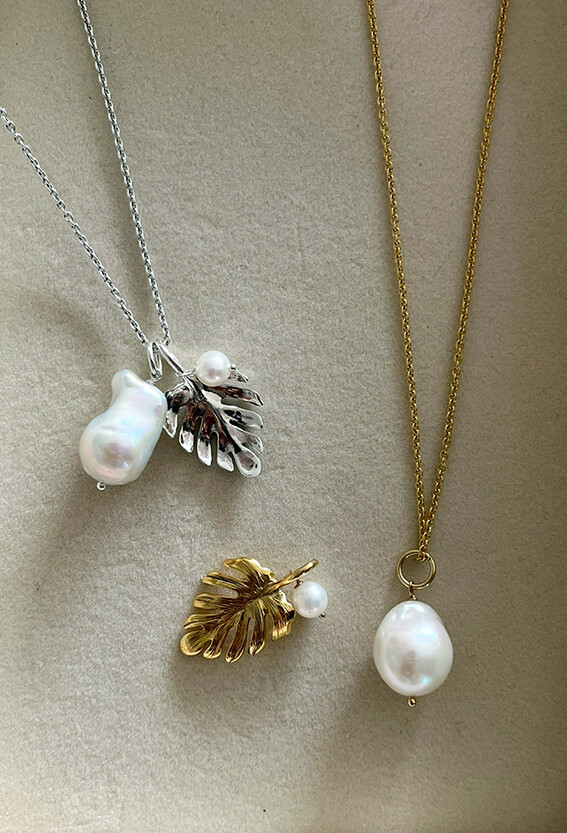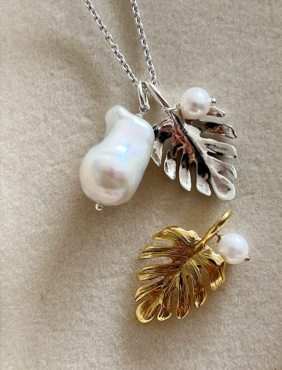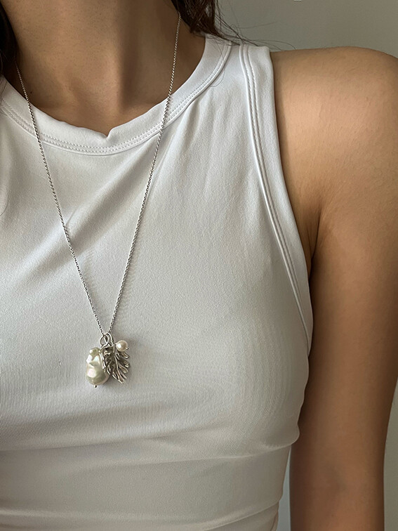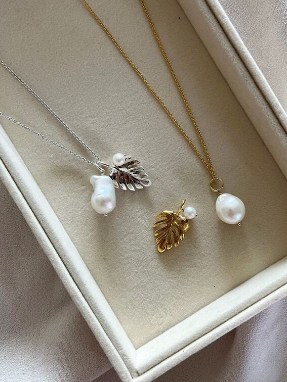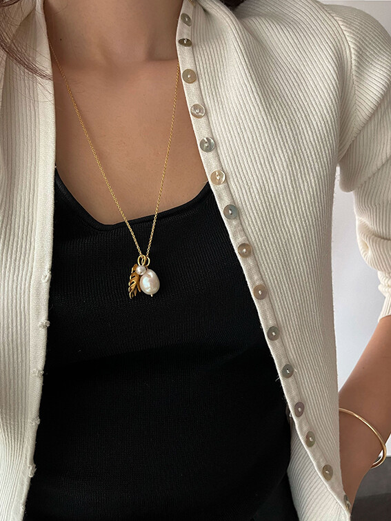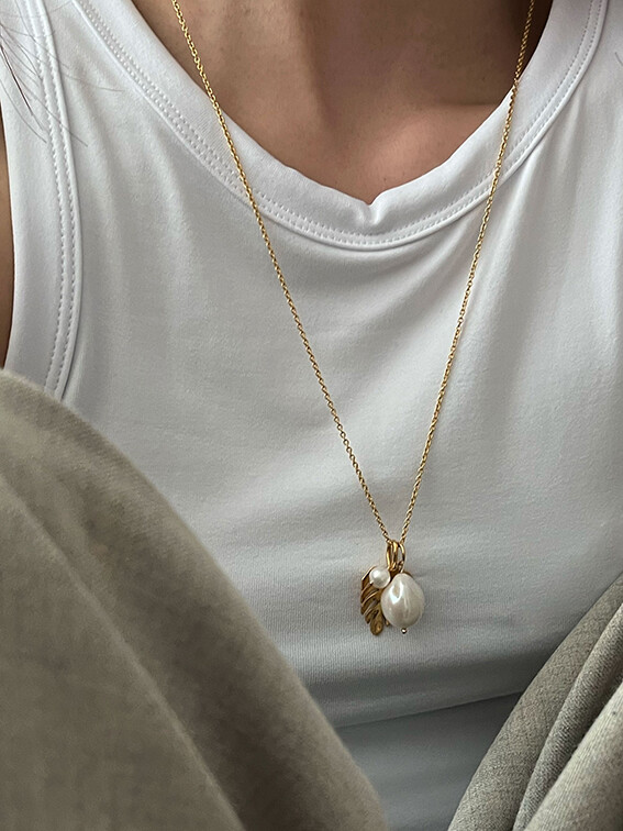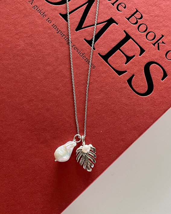 바로크 진주와 몬스테라 잎 팬던트가 함께 구성된 롱네클레스올 시즌 우리들이 주목하고 있는 편안하고 고급스러운 룩에 꼭 필요한 아이템이라고 생각해서 준비한 제품입니다.