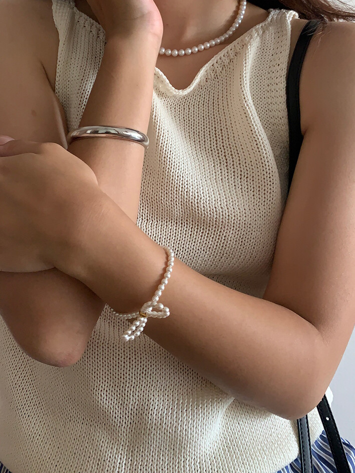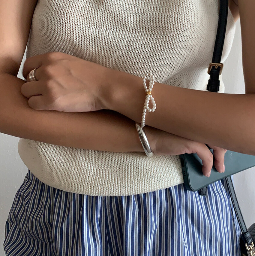 심플하지만 아이코닉하고 자주 손이갈 수 있을만한 리본형태의 팔찌입니다.