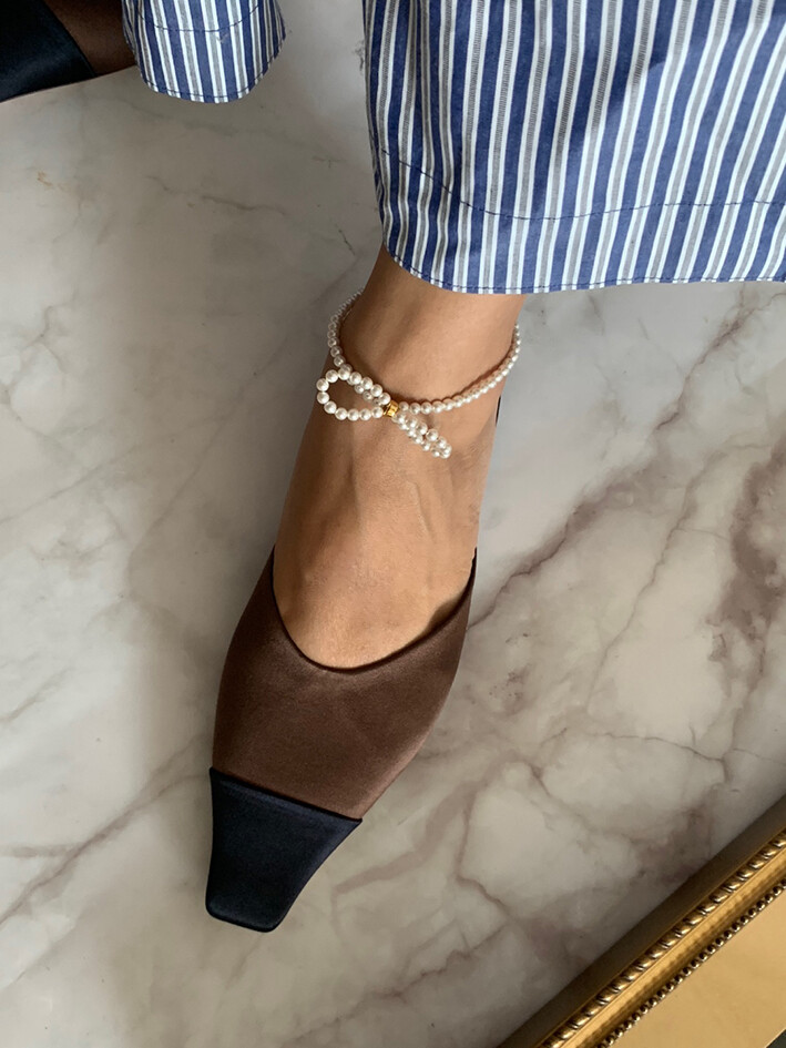 심플한 슈즈에 매칭할때는 발목 중앙에 둘러지게하여 발 전체의 스타일링을 바꿀 수 있다는 장점을 지니고 있습니다.