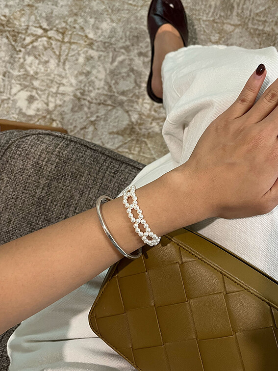 디자인의 특성상 팔목에 여유있게 착용하기 보다는 딱 맞게 하는 것이 가장 예쁩니다.