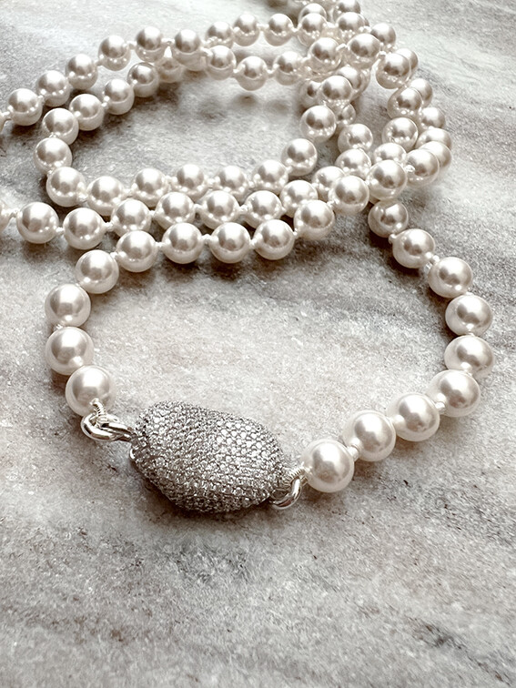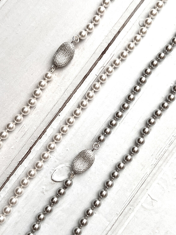 스와로브스키 진주는 가장 대표적인 글라스 진주로 표면의 진주 광택이 더욱 투명하고 깊이있게 빛나도록 원재의 질감을 잘 활용한 인공진주입니다.