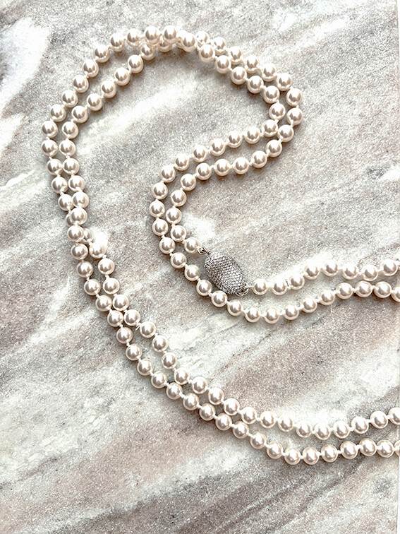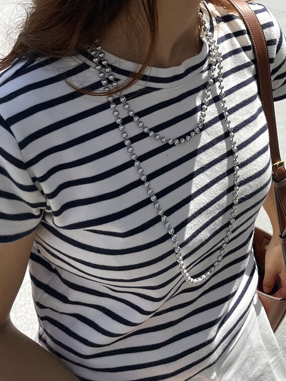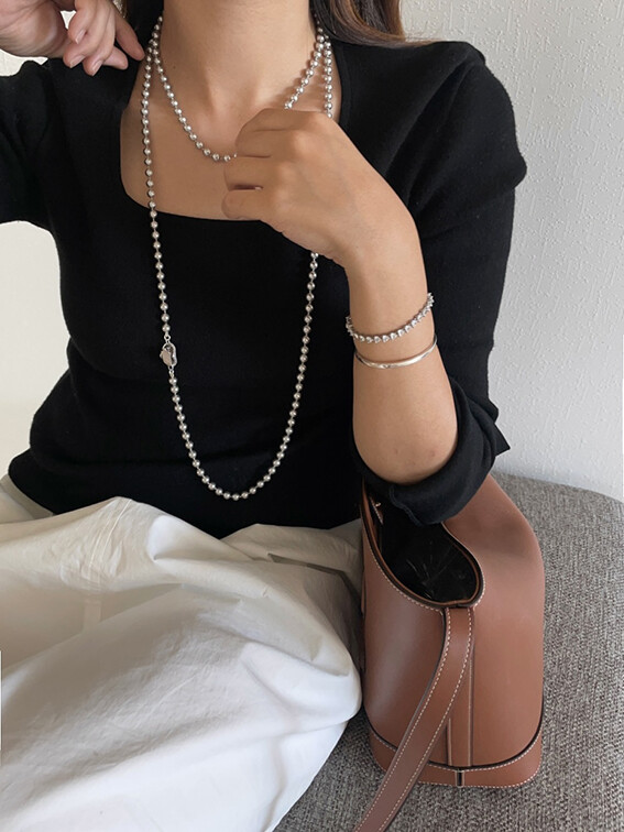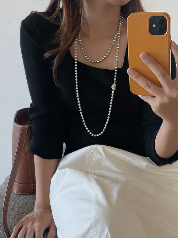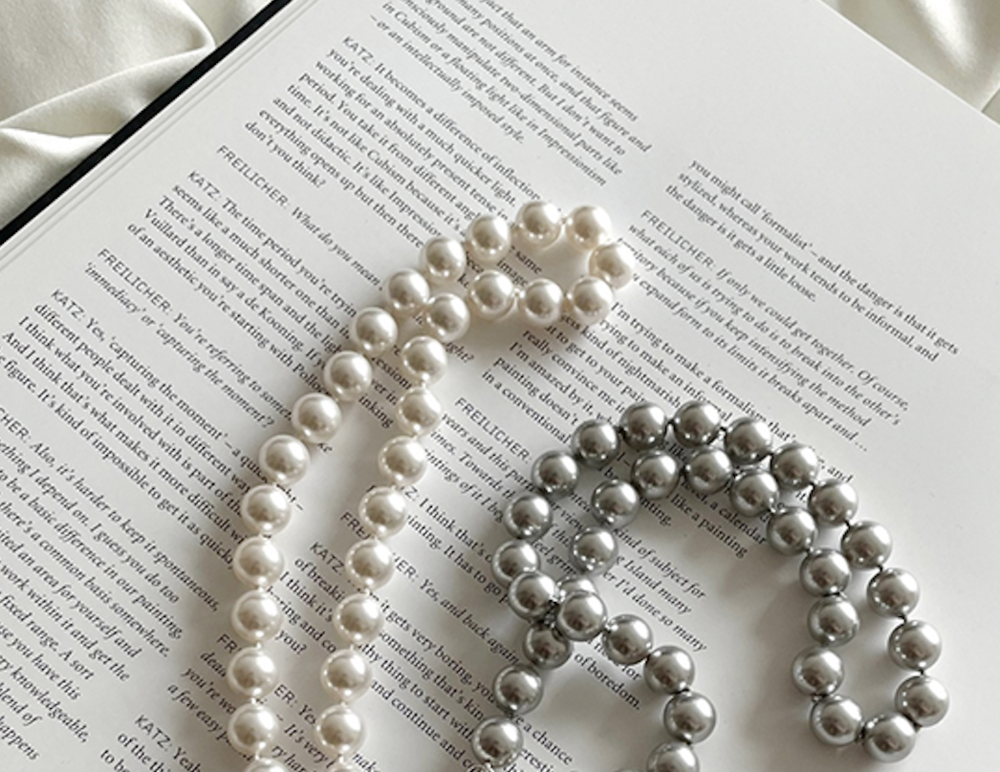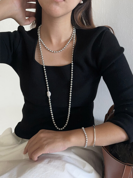 진주목걸이를 착용했을때 어느정도 무게감이 있어야 부드러운 옷감과 잘 스타일링되고