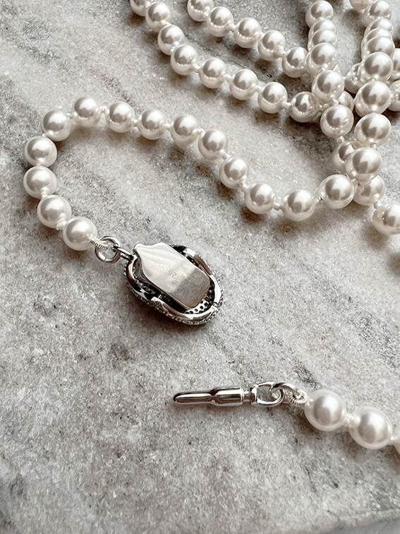 전통적인 스타일의 진주목걸이에서 벗어나 캐주얼과 다양한 스타일에 믹스매치 될 수 있도록 현대적인 느낌의 스와로브스키 진주를 사용해 디테일한 디자인의 클래습과 연결된 디자인을 진행하였습니다.