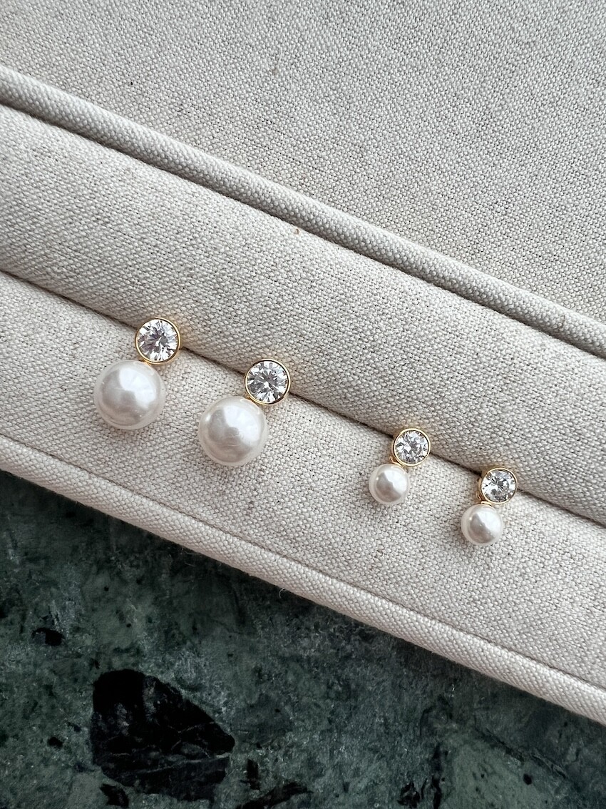 스톤과 진주의 사이즈에 따라 2가지 세트, 2가지 컬러 옵션까지 총 4가지 선택지가 있습니다.