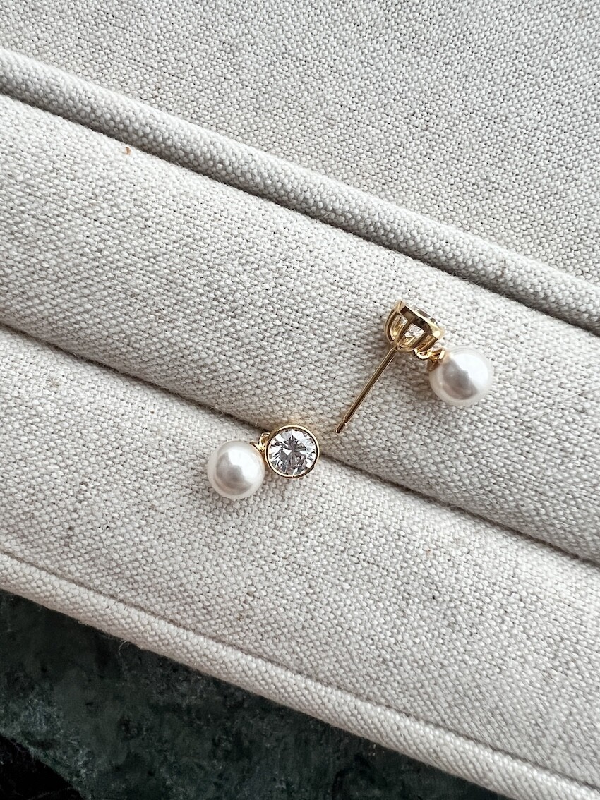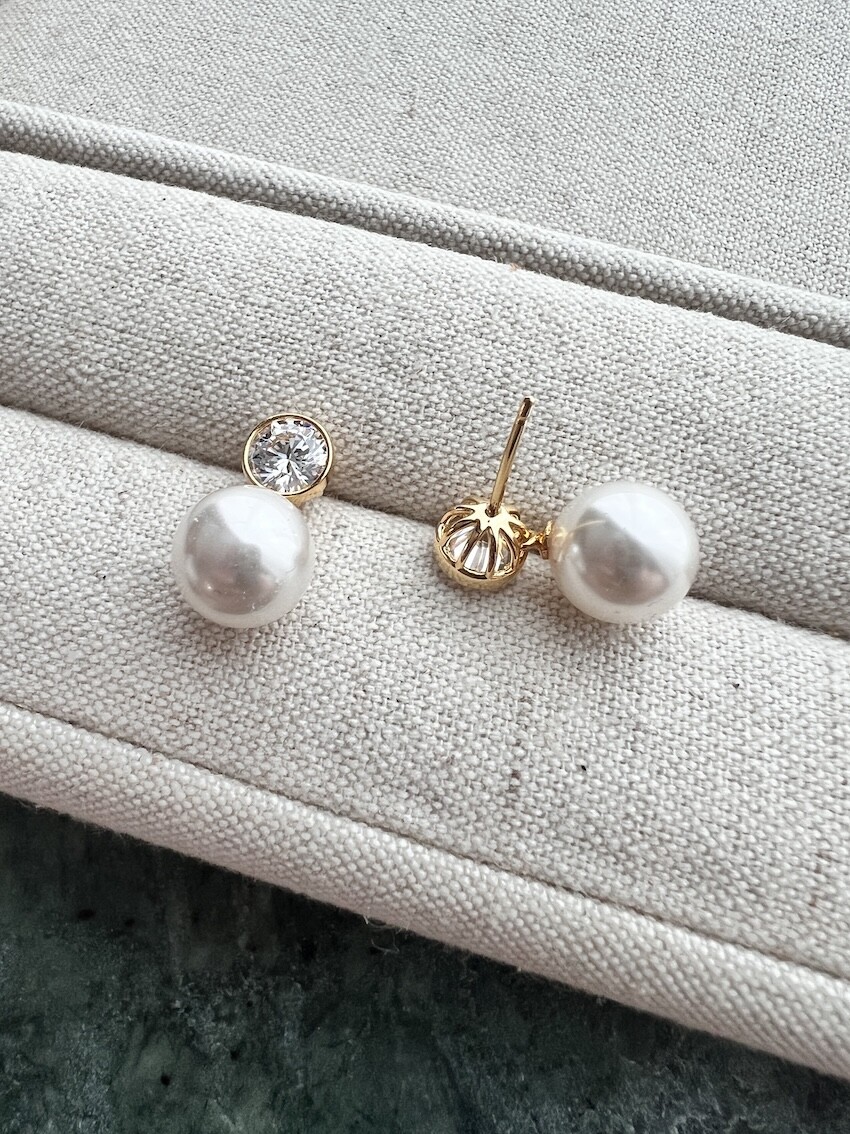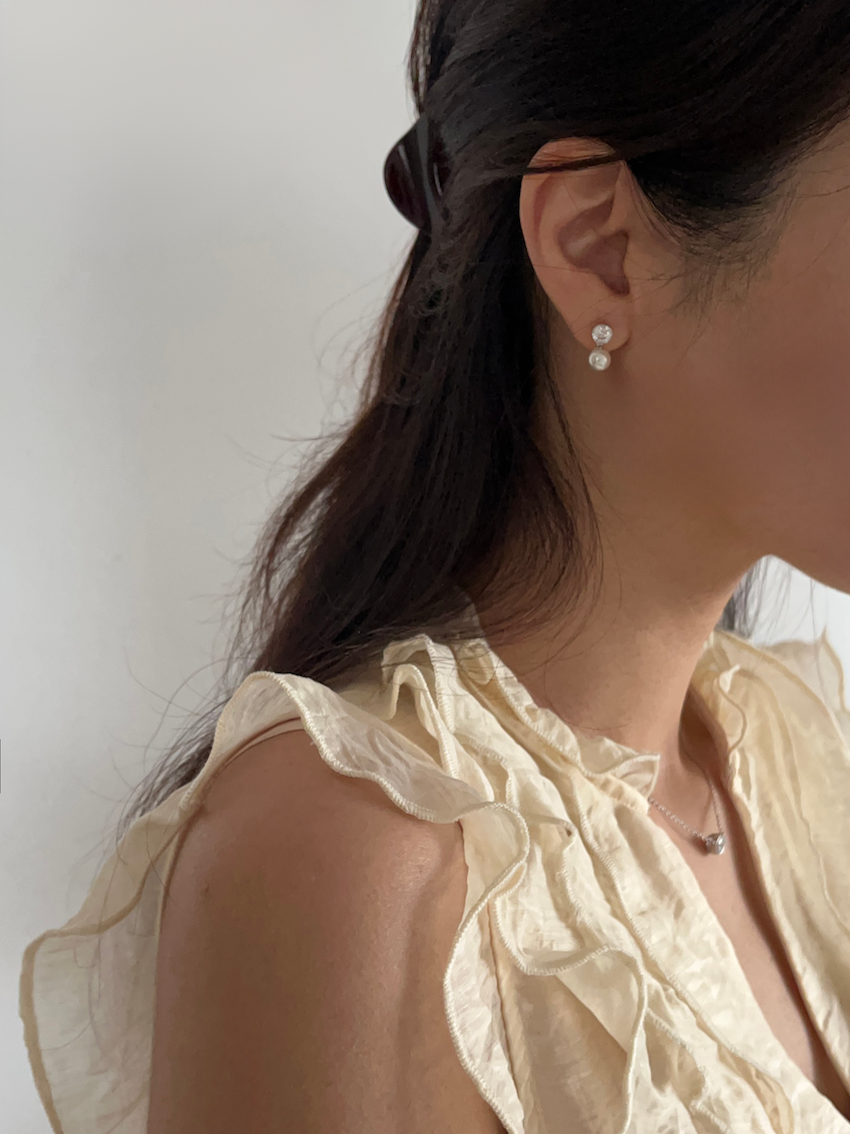 진주를 귀걸이로 제일 많이 활용하는 것이 한피스만 활용한 심플 스터드 이어링이고