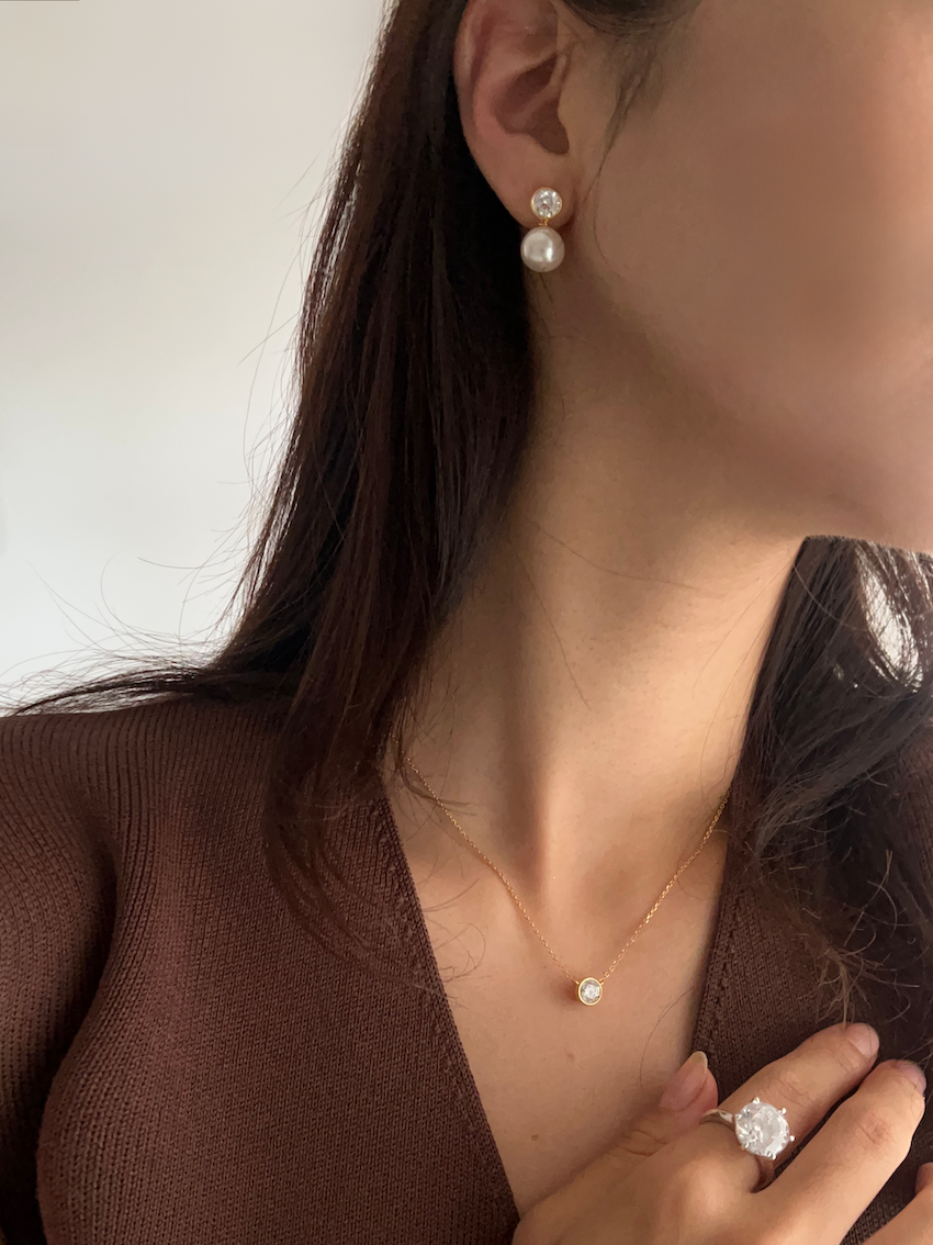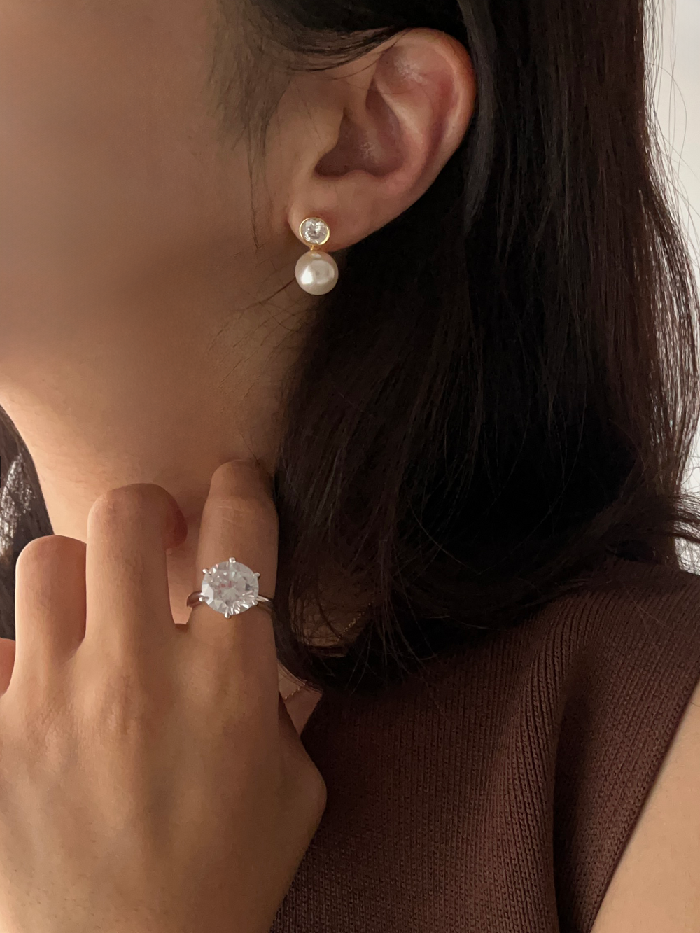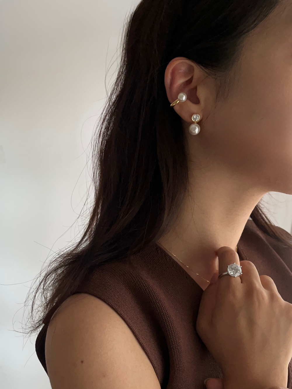 다이아몬드 1캐럿 사이즈와 비슷한 스톤에 이보다 더 크기차이가 나는 진주를 매칭하여 S사이즈와는 사뭇 다른 무드를 연출합니다.