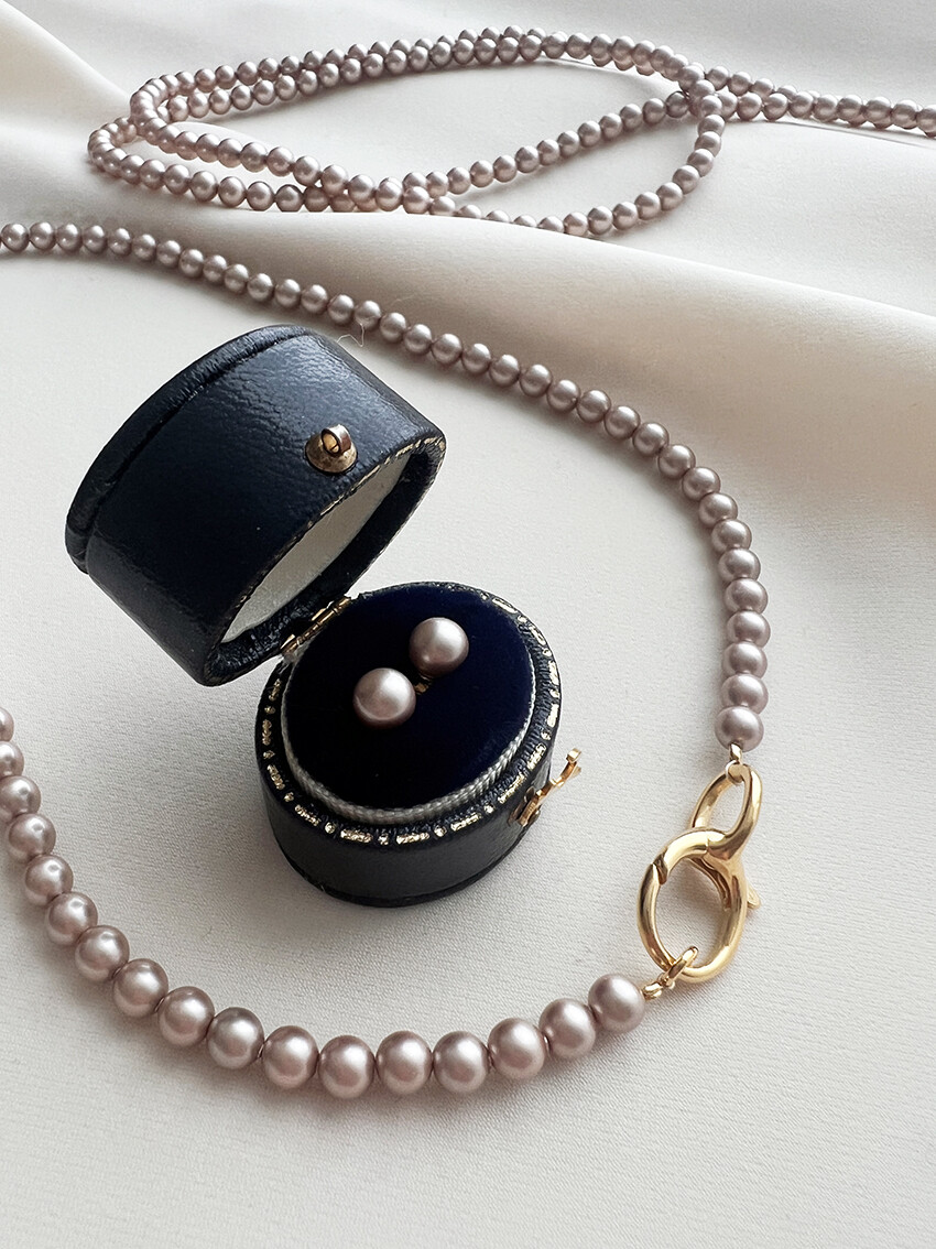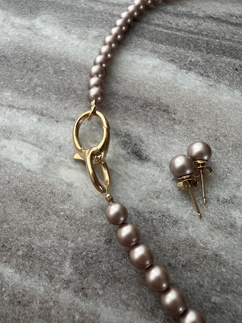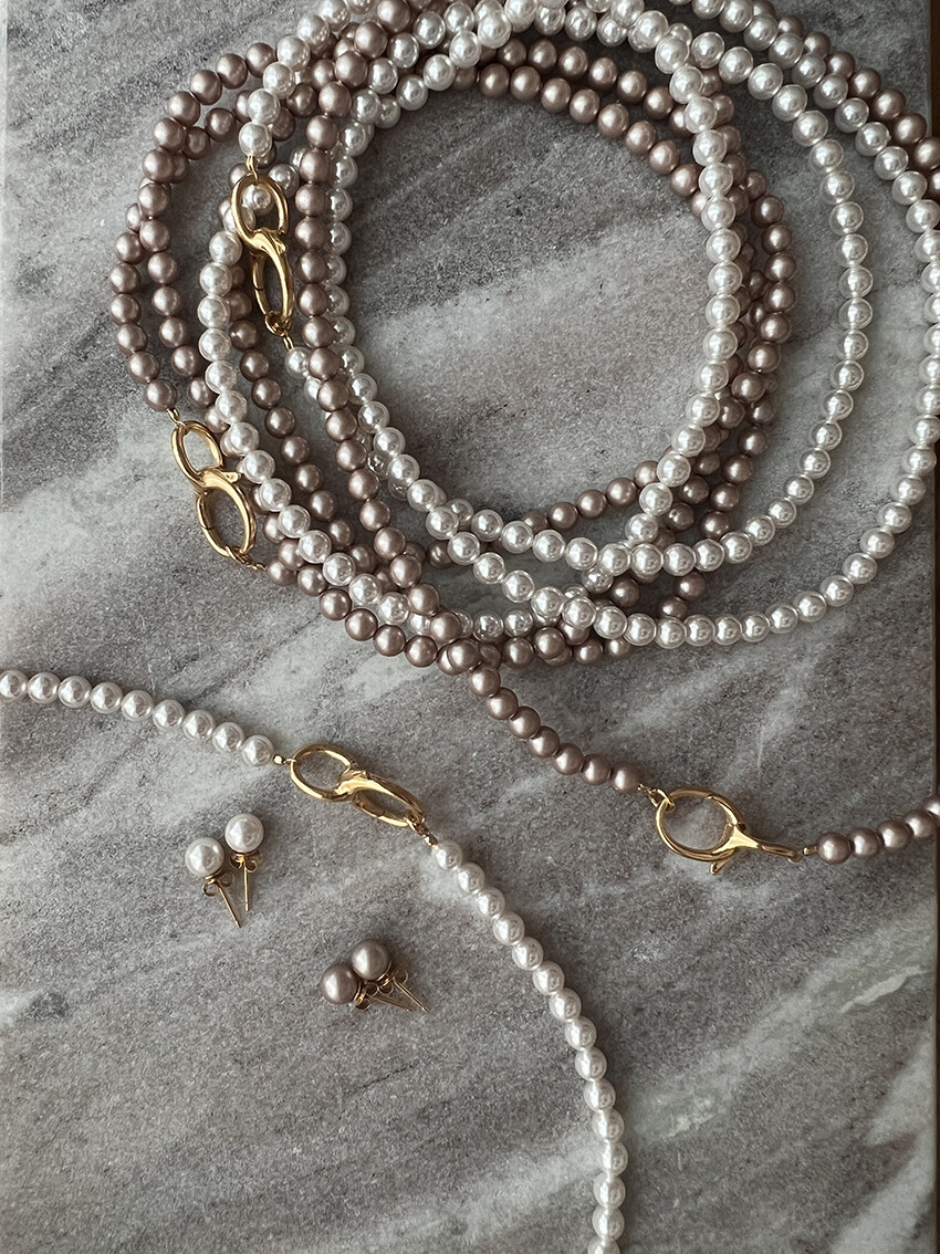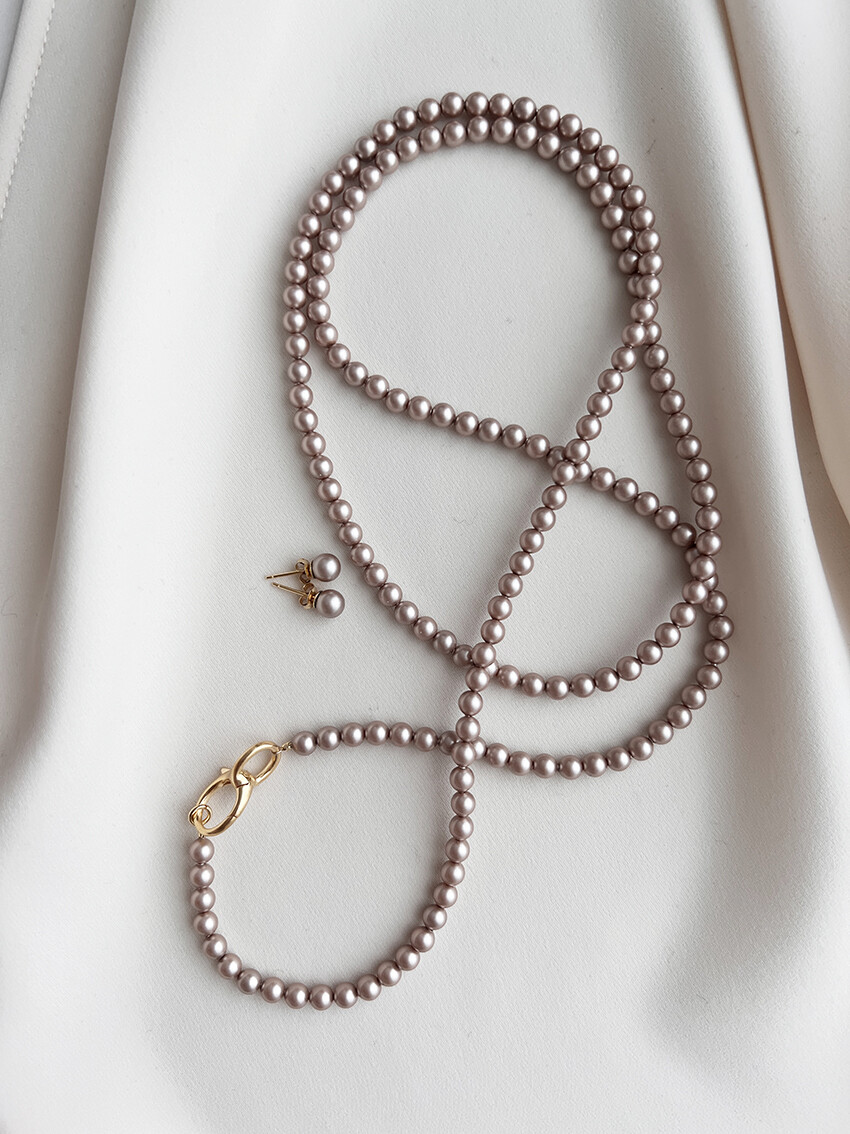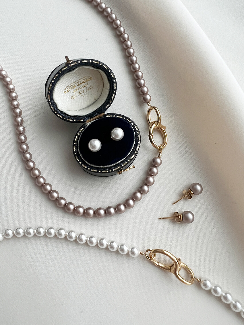 스와로브스키사에서 만드는 다양한 컬러 진주들 가운데에 가장 아름답다고 생각되는 아몬드펄 컬러를 메인으로 진행합니다.