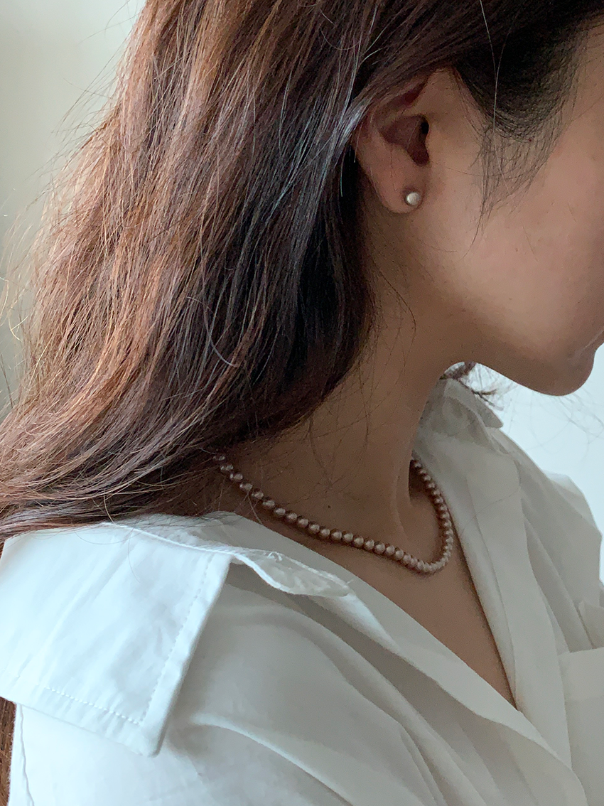 귀걸이는 목걸이보다 약간 큰 사이즈인 6mm 사이즈를 사용하며, 착용했을때 목걸이와 밸런스가 맞는 크기로 선택했습니다.