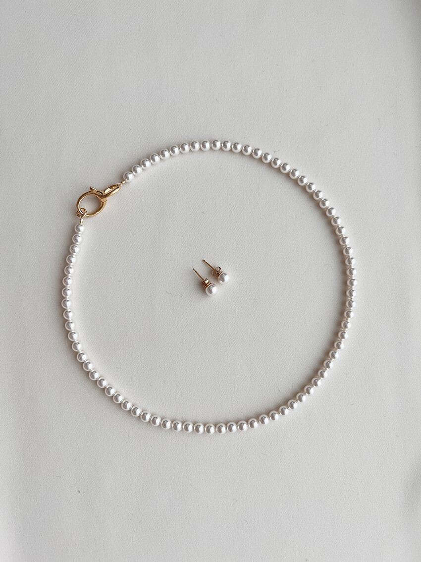 화이트와 아몬드 컬러로 두가지 선보이며, 목걸이 구매시 매칭 귀걸이가 세트로 구성됩니다.