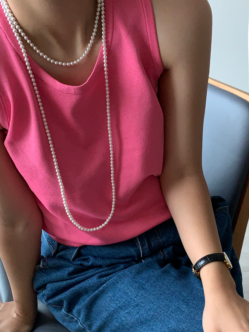 더운 계절에 목에 달라붙지 않는 글라스 소재의 인공진주로