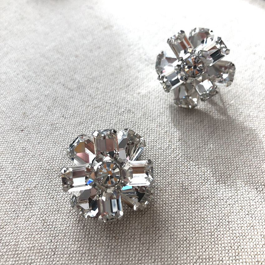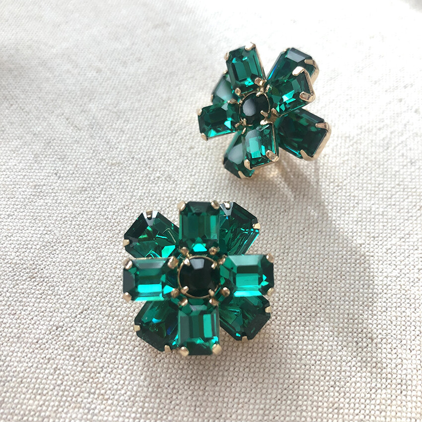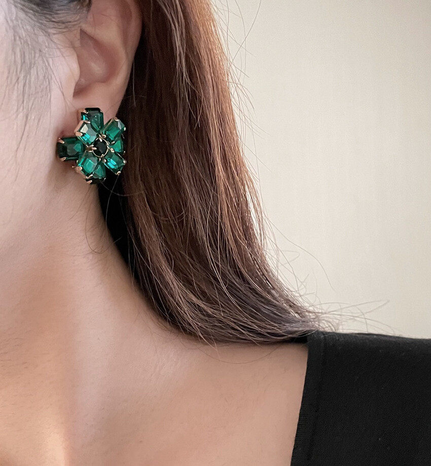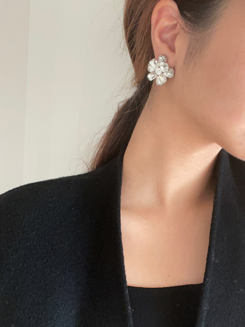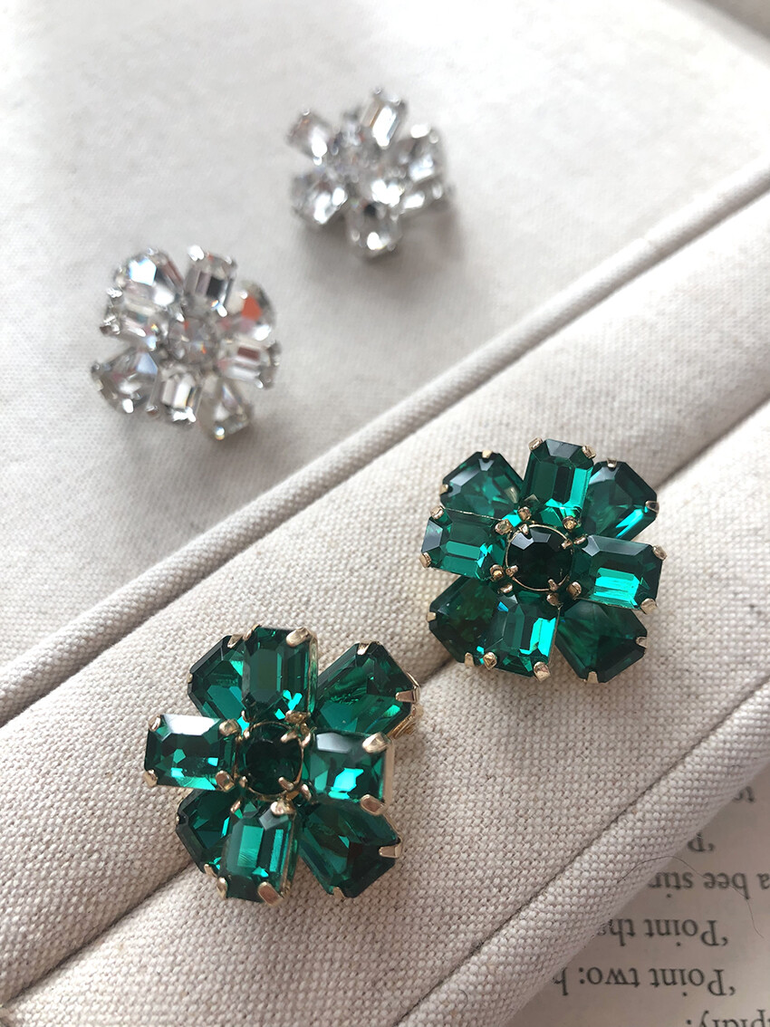 직사각형으로 컷팅된 크리스탈이 멋스럽고 빈티지한 매력을 보여주며, 착용했을때 화려한 꽃이 장착된 것 같은