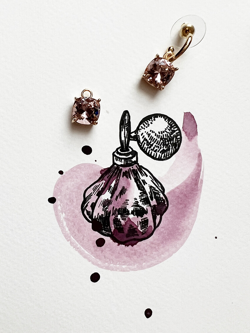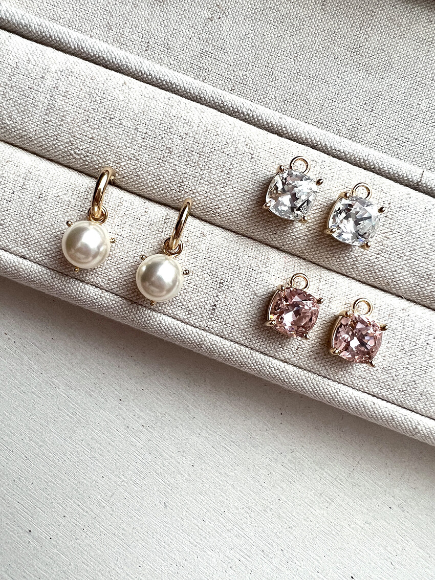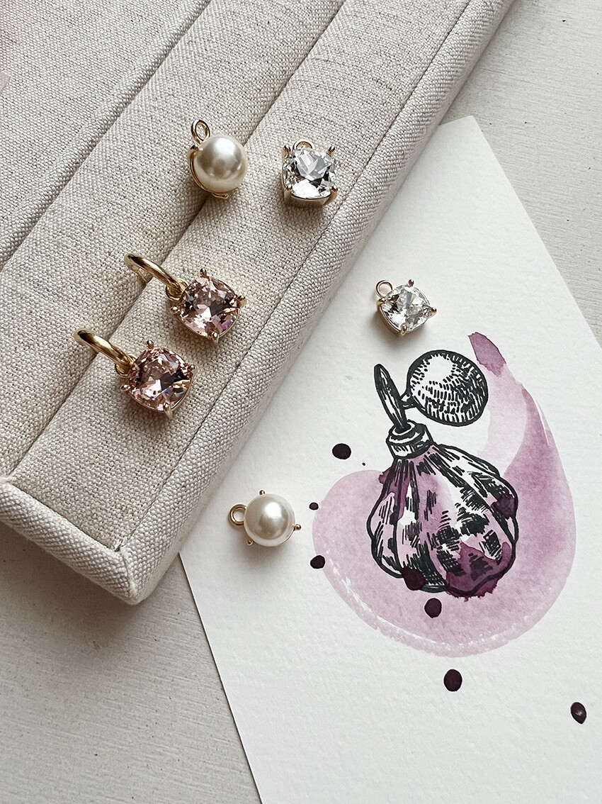 스와로브스키 정품 크리스탈과 진주를 사용했고 일상적으로 가장 많이 사용할 클리어 컬러와 로즈핑크 컬러의 쿠션컷 크리스탈,